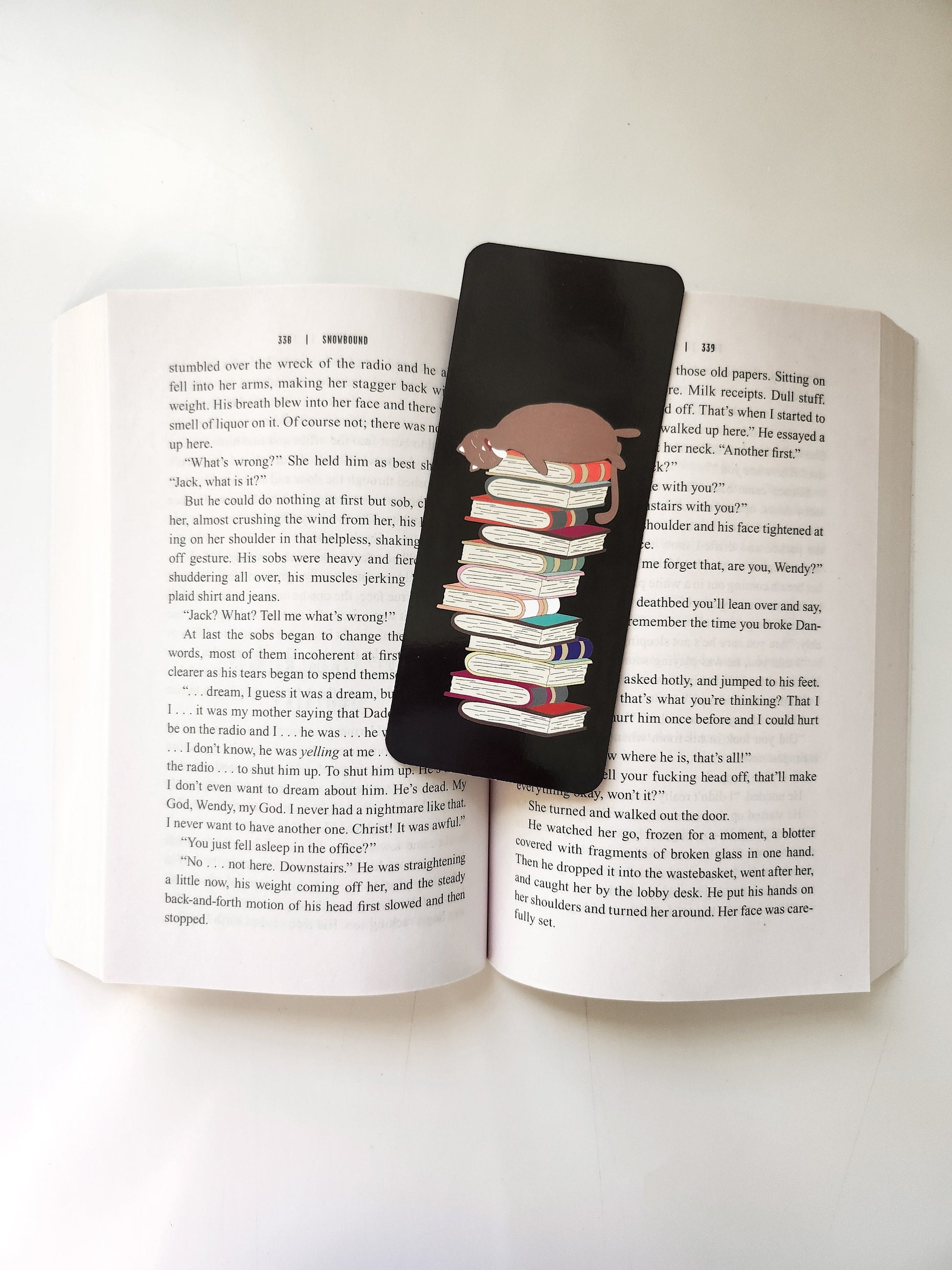 Cat on a Stack of Books Bookmark, 2.5x6"