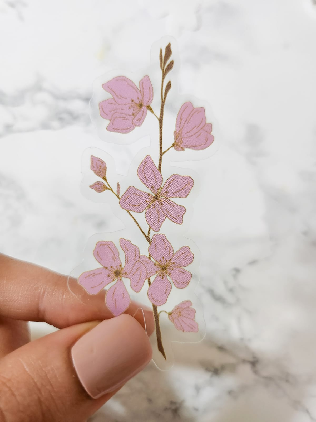 Cherry Blossom Sticker, Clear, 3 x 1.5in