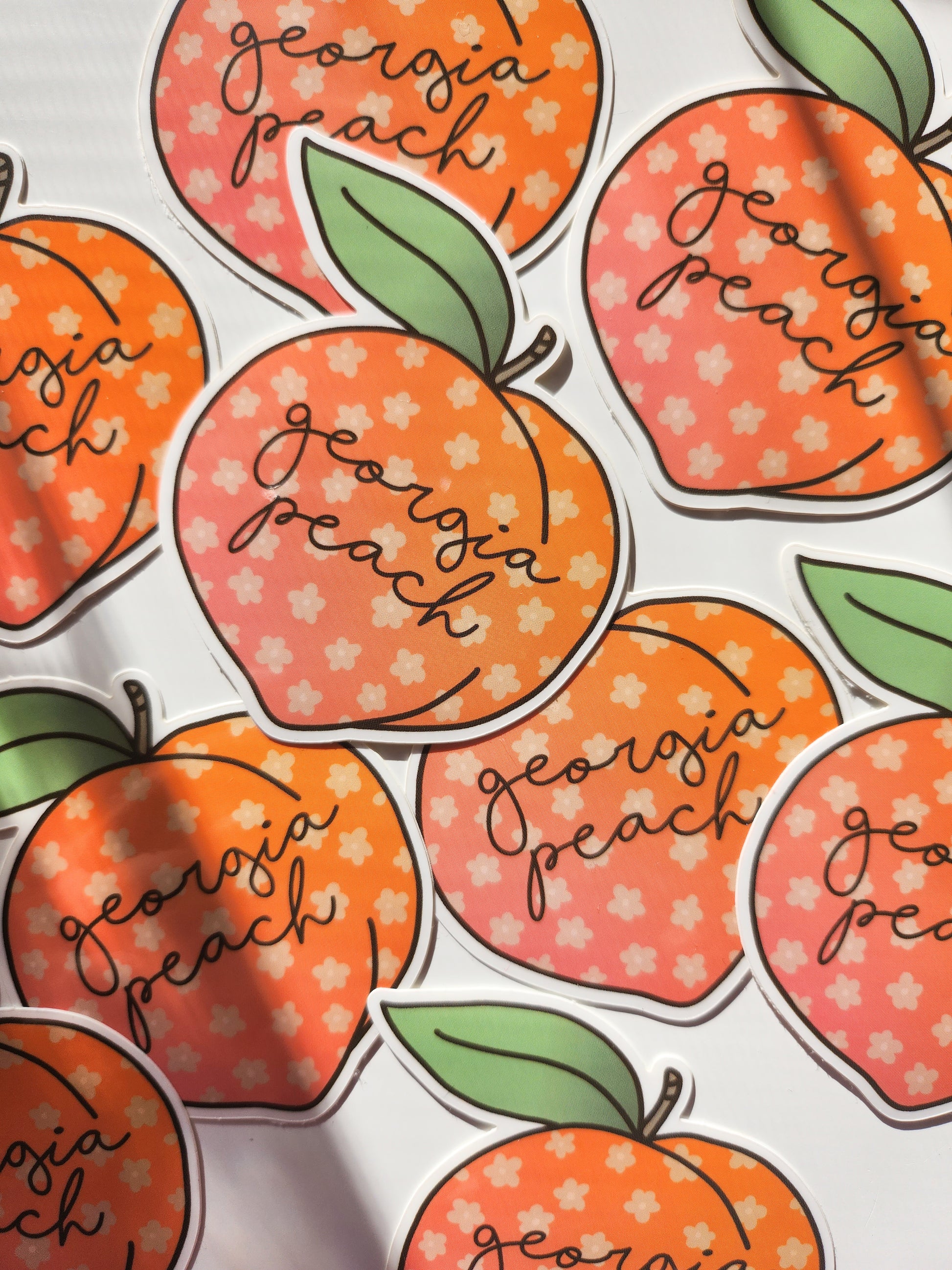 Georgia Peach Sticker in Orange, Vinyl, 2.5 x 2.5in