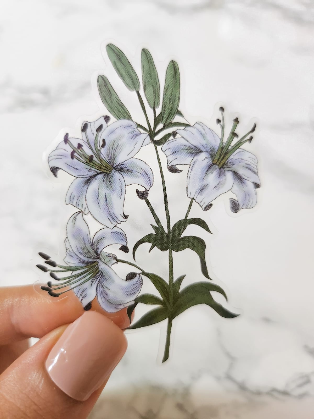 Day Lily Watercolor Flower Sticker, Clear, 3 x 2.2in