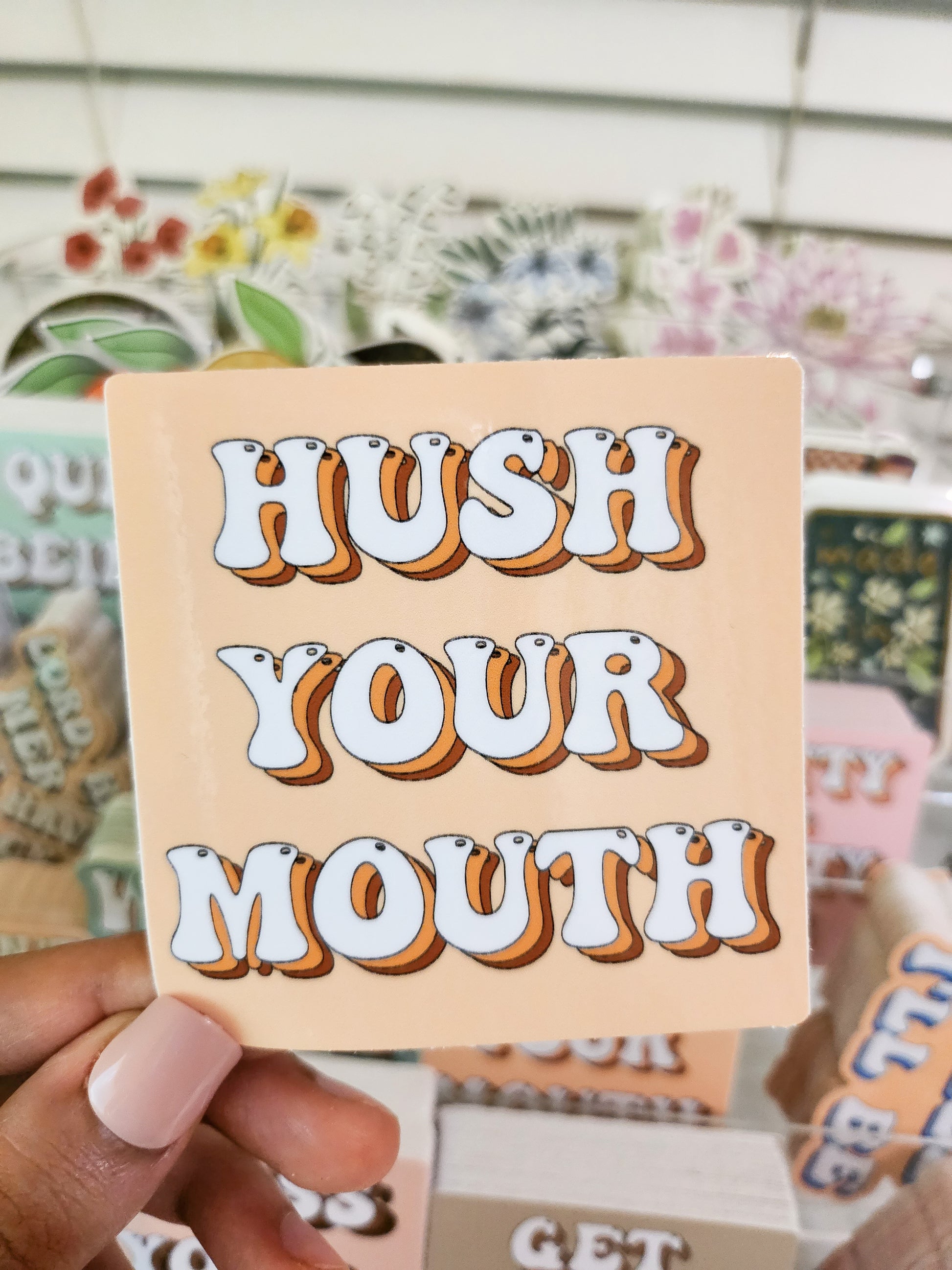 Hush your mouth Sticker, Vinyl, 3 x 2in