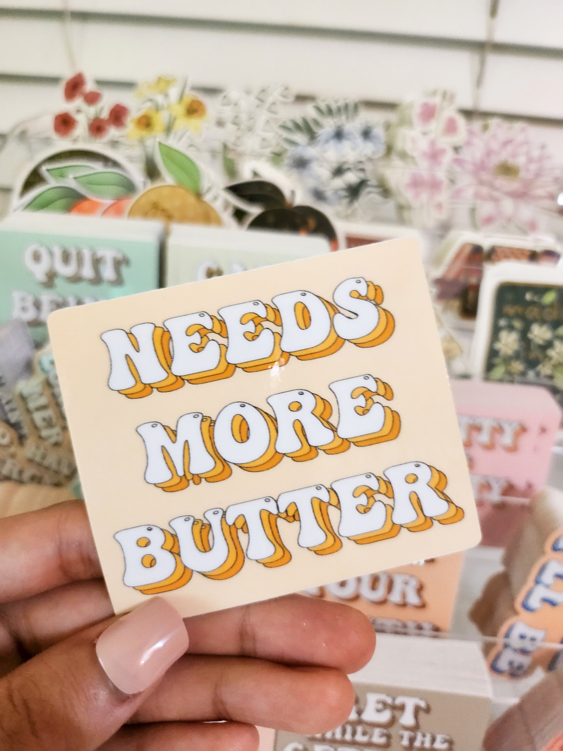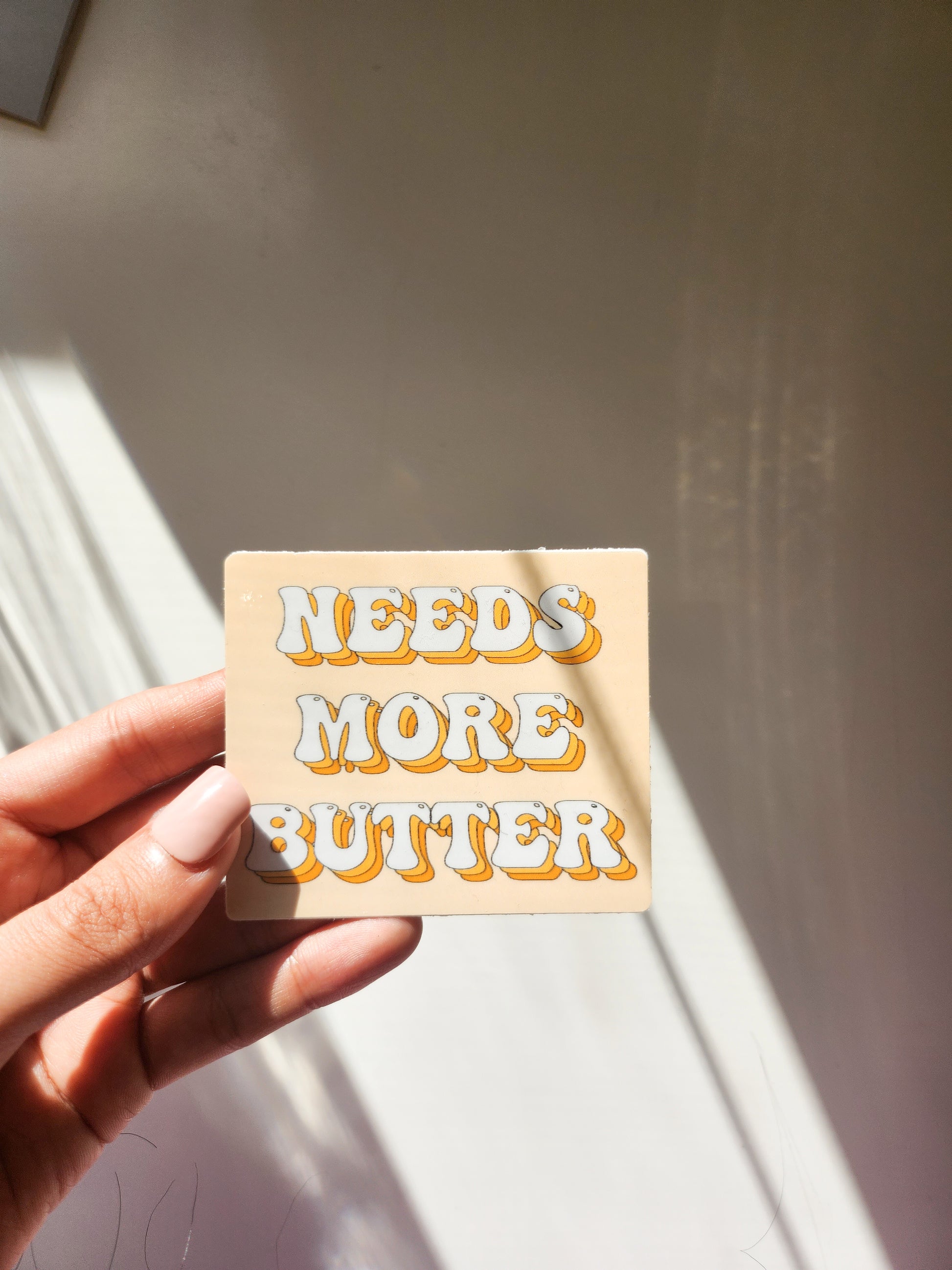 Needs more butter Sticker, Vinyl, 3 x 2.5in