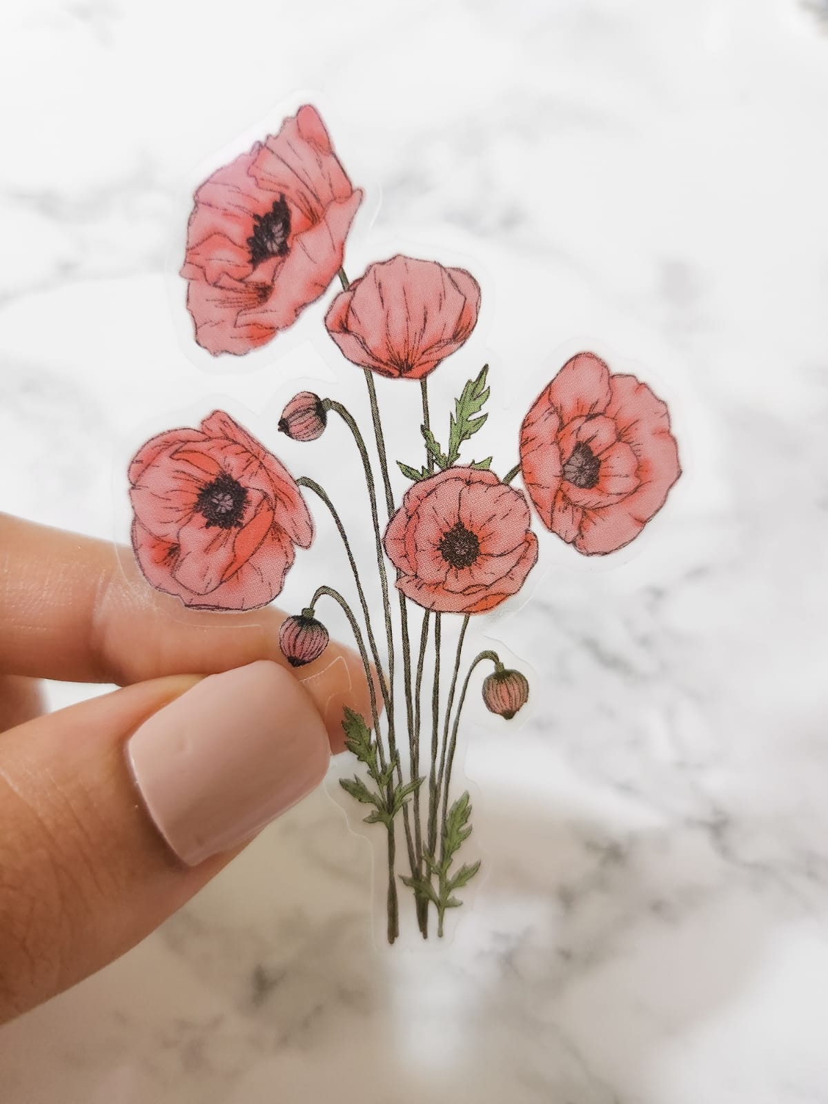 Poppy Watercolor Flower Sticker, Clear, 3 x 2in